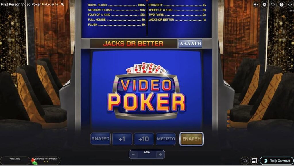 Η κλασική μηχανή που μας θυμίζει παλαιότερες εποχές με μηχανές πόκερ σε καφετέριες. Το intro και το background μάλιστα σε μεταφέρει στην αισθητική μιας τέτοιας αίθουσας. Πρόκειται στην ουσία για video poker σε πιο premium μορφή. Παίζεις 5 φύλλα και προσπαθείς να δημιουργήσεις ένα δυνατό συνδυασμό φύλλων όπως ζευγάρι, κέντα, χρώμα, full house κλπ. Υπάρχει πάντα η επιλογή “Hold” για να κρατήσεις τα φύλλα που θέλεις πριν τραβήξεις νέα.
