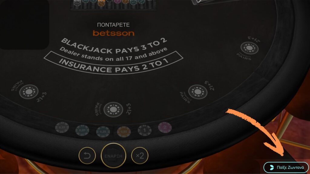 Το κουμπί της Betsson για μετάβαση στο αντίστοιχο ζωντανό τραπέζι με γκρουπιέρη και συμπαίκτες θα είναι εκεί όταν είσαι πραγματικά έτοιμος.